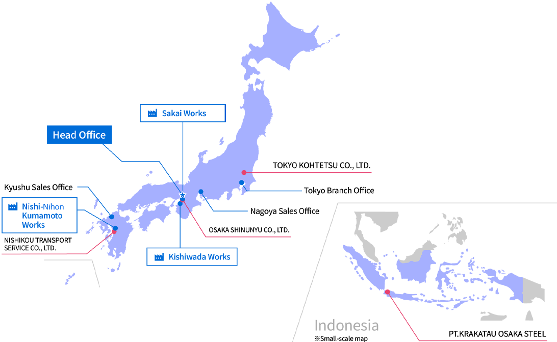 Located in Oyama city,Tochigi Prefecture, this site has electric arc furnaces and Rolling mill, and supplies high value added steel products such as equal angles and unequal angles. Its selling network covers east area of Japan.